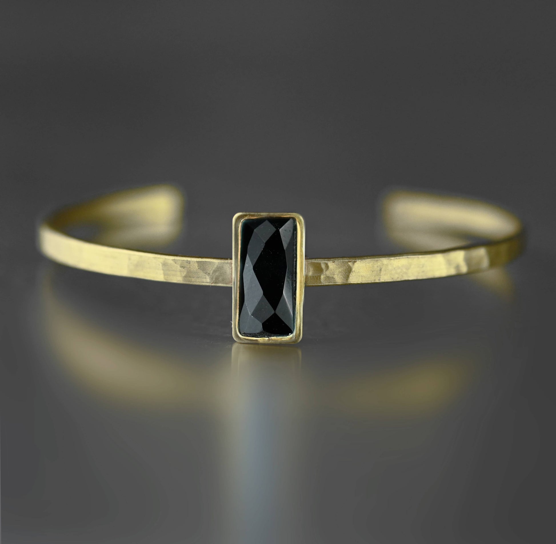 Thin Brass Cuff w/ Semi Precious Gemstone: Amazonite